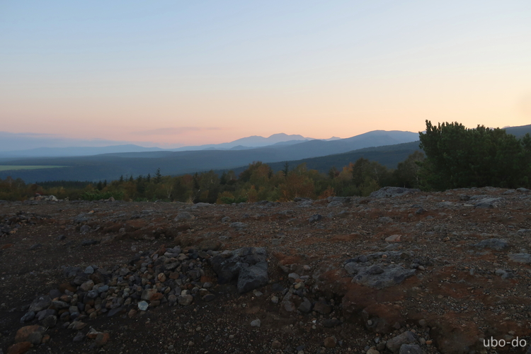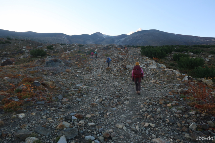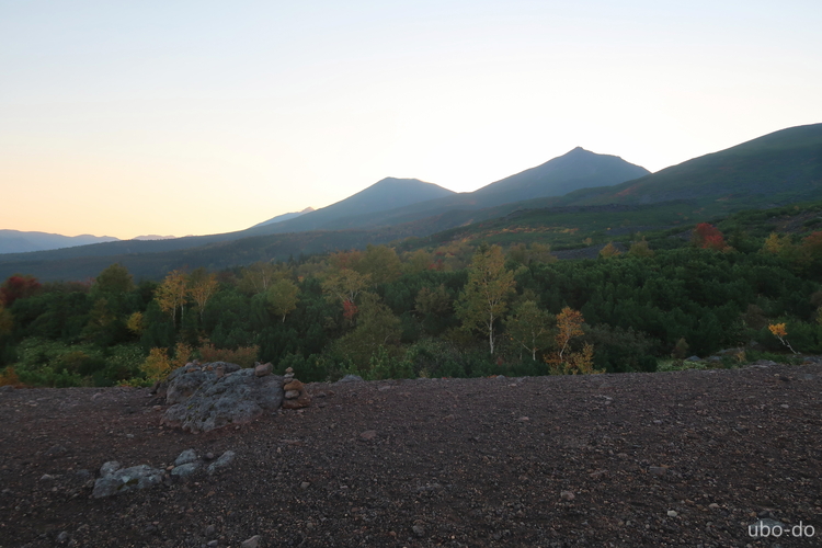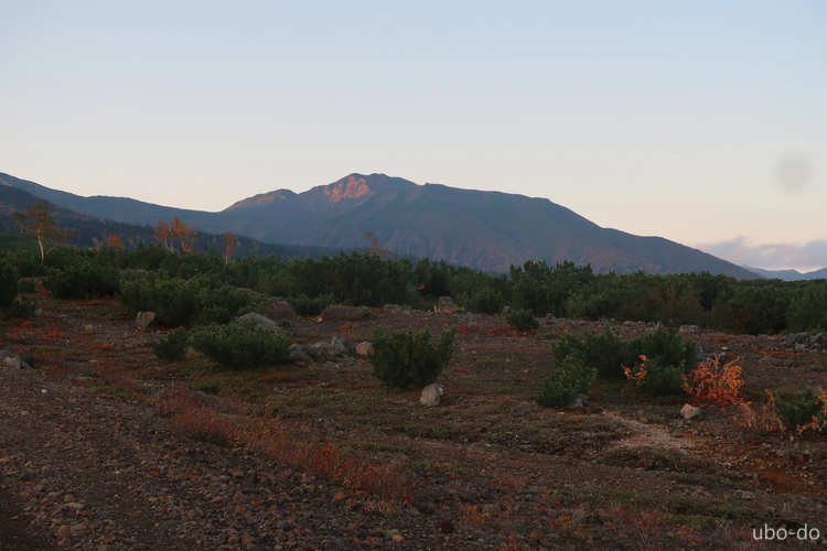 早朝には北東の方角に、明日登る予定の大雪山が見えていた。