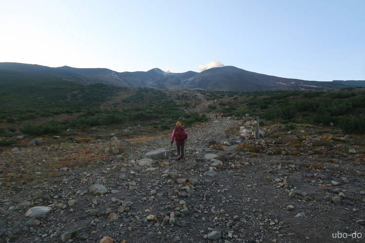 何度も足を止めて、遠ざかる十勝岳を眺めた。