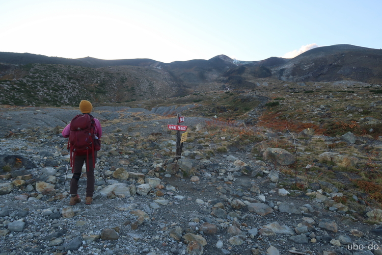 6:35 雲ノ平分岐を通過。美瑛岳側へ向かう登山者もいた。ちなみに美瑛岳と十勝岳を周回すると10時間コースになる。