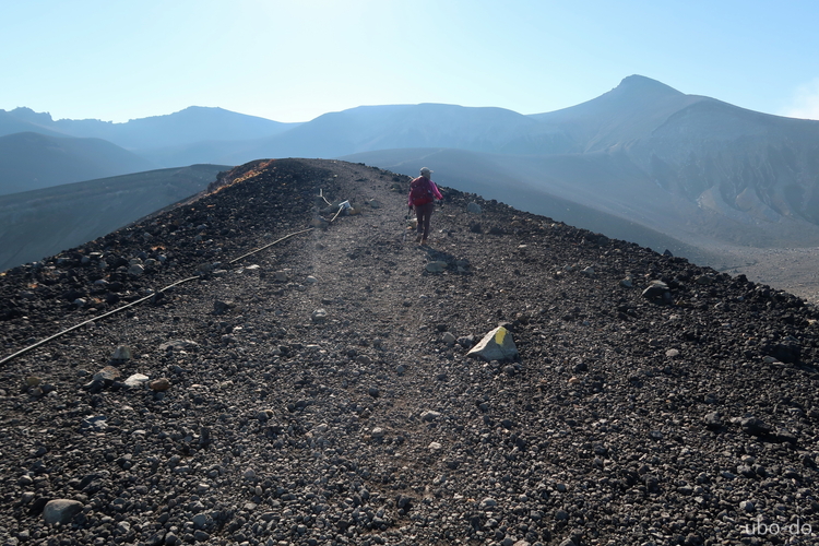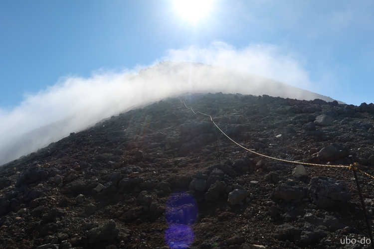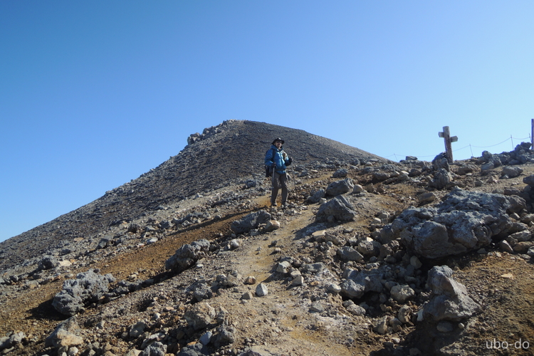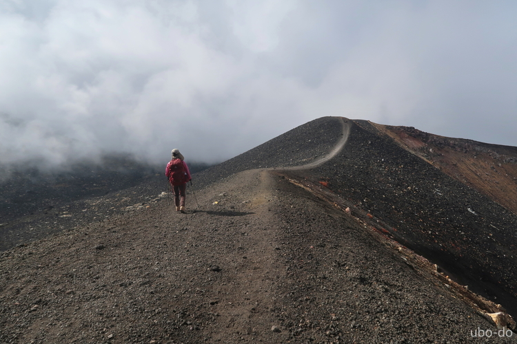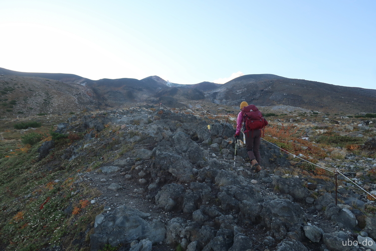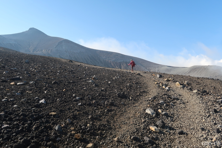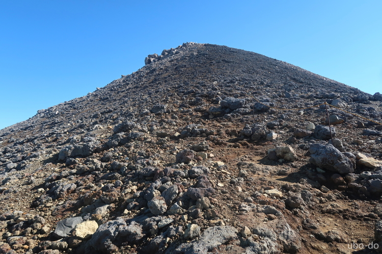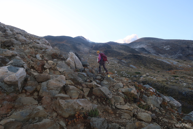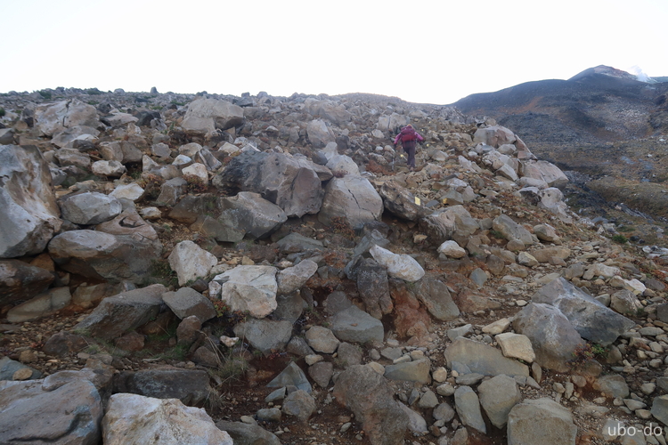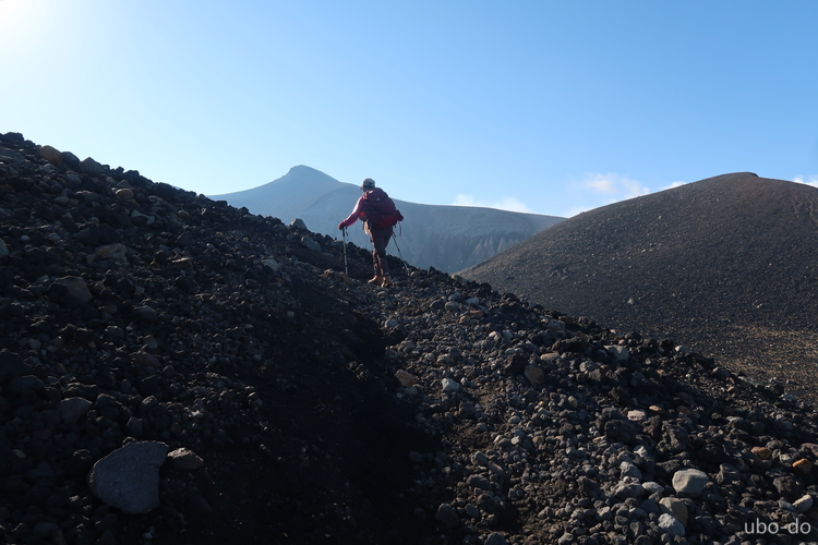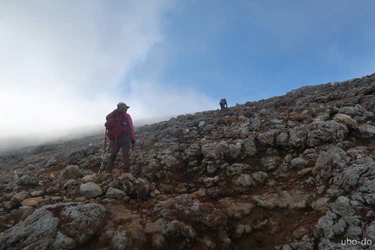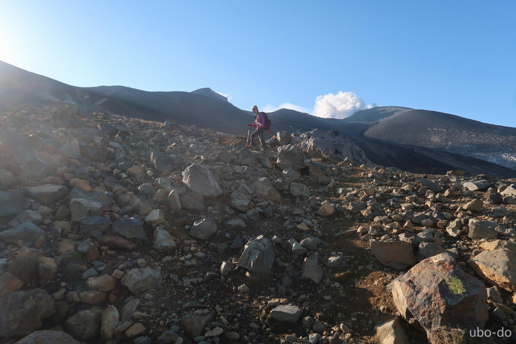 火山らしい岩ゴロの道となり、傾斜が増してきた。