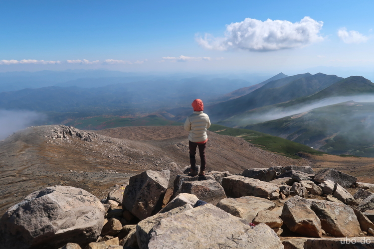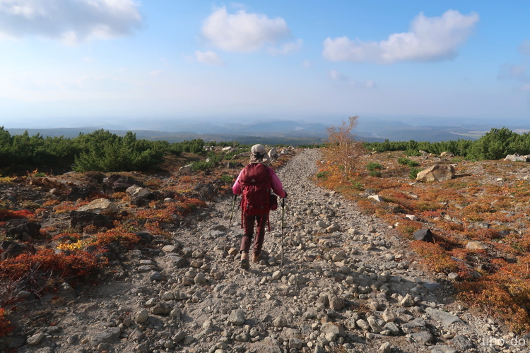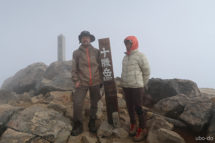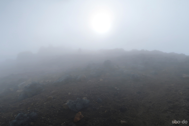 5時起床。前日は旭山動物園をのんびり散策しながら身体を休めて、夜は望岳台駐車場で車中泊した。この日も朝から晴れていて心も体も軽かったが、登山を開始してから2時間ほどしてガスが出始めた。山頂手前は濃霧で10m先も見えないほどで、登頂後も周囲は真っ白という状態が続いた。