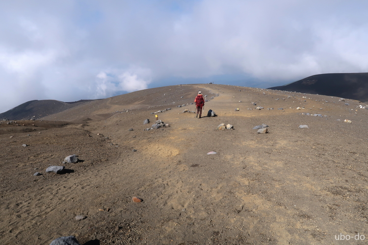 火口群に囲まれた平坦な稜線台地まで降りてきた。