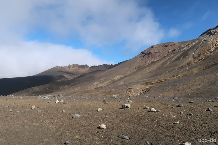 火山特有の異質な景観の広がりに、何度も足を止めて見入ってしまった。