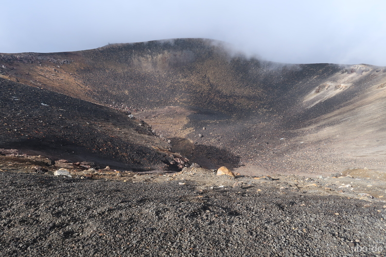 左手の北側に見えたすり鉢噴火口。すり鉢火口の手前にあるはずの昭和火口の場所はよく分からなかった。