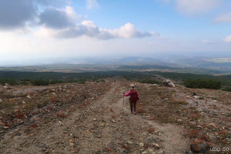 稜線とは思えない広さなので、濃霧が出たら道に迷ってしまいそうだ。