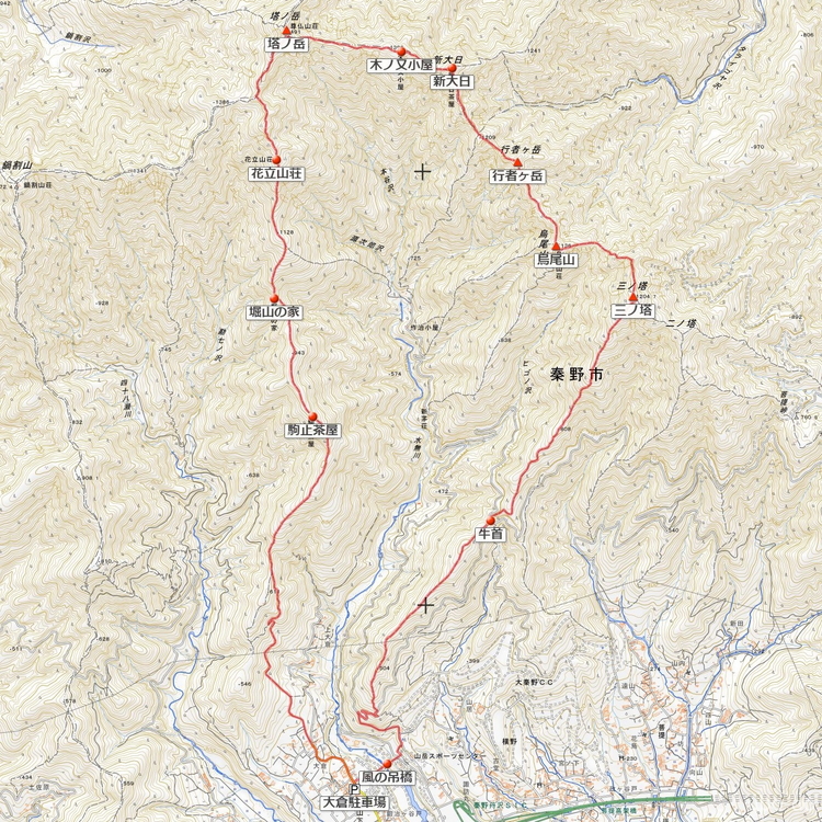 大倉駐車場 5:45 ⇒ 見晴茶屋 6:55 ⇒ 駒止茶屋 7:35 ⇒ 7:55 堀山の家 8:05 ⇒ 8:50 花立山荘 9:05 ⇒ 9:40 塔ノ岳 10:55 ⇒ 新大日 11:35 ⇒ 行者ヶ岳 12:15 ⇒ 12:40 烏尾山 12:50 ⇒ 13:20 三ノ塔 13:35 ⇒ 牛首 14:30 ⇒ 大倉駐車場 15:35