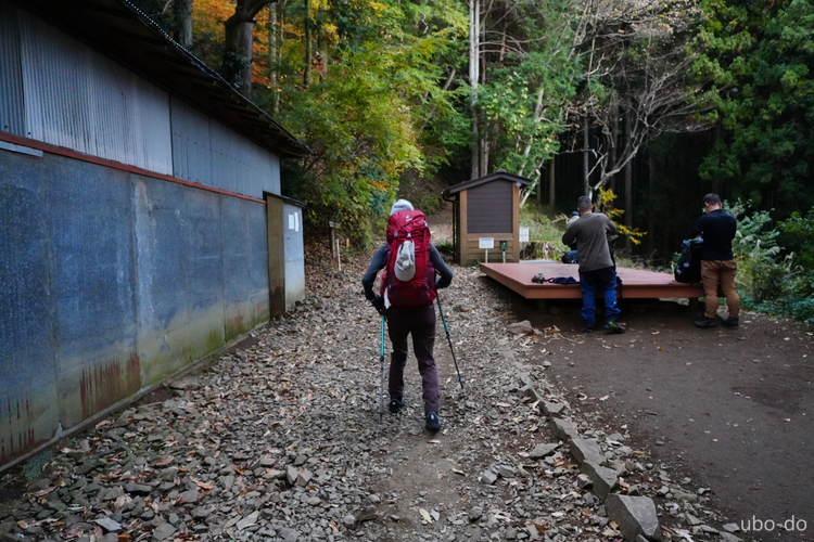 駒止茶屋に到着。近くのテーブルベンチで休むハイカーが何組かいた。