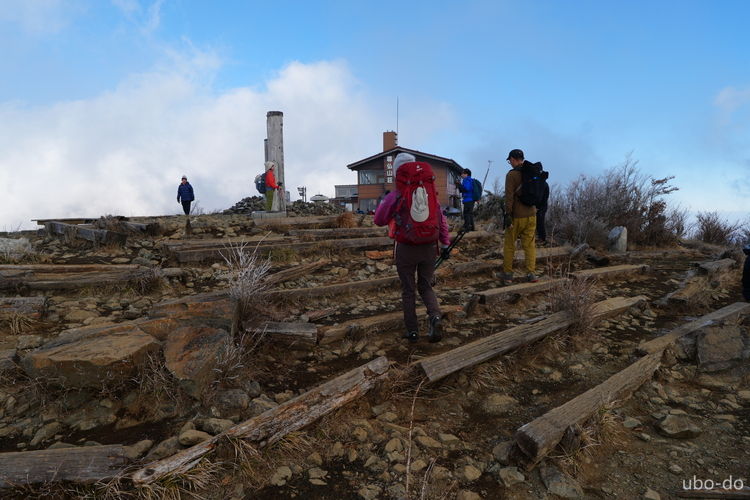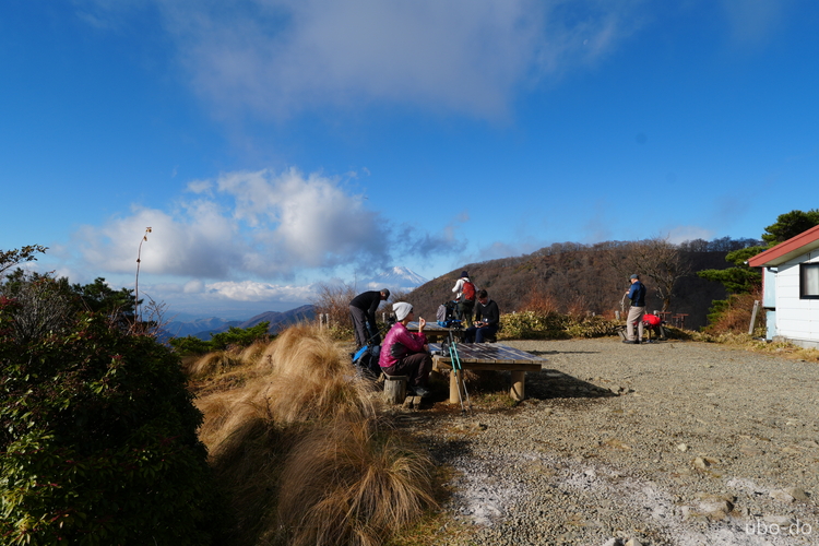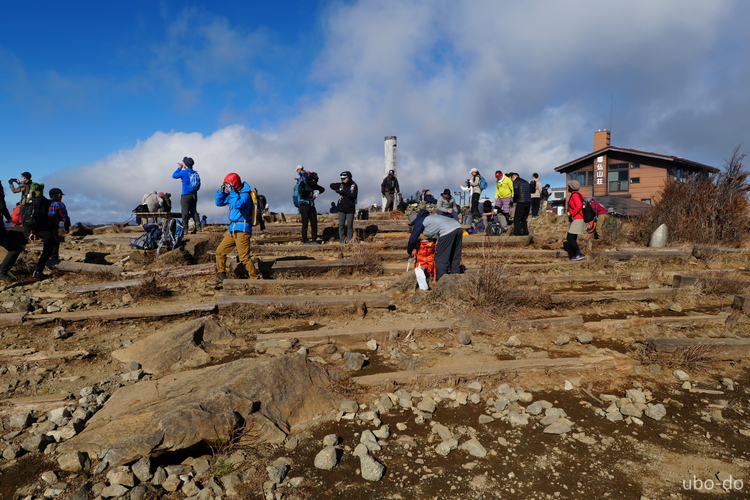 しばらく休んでいると、団体ハイカーの到着で山頂がにぎやかになってきた。
