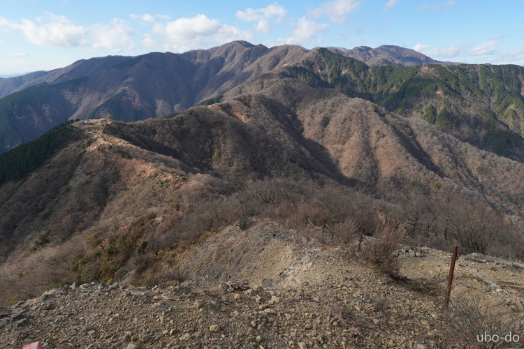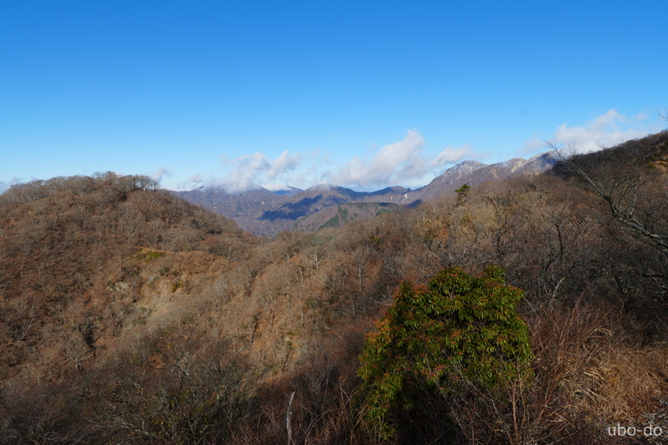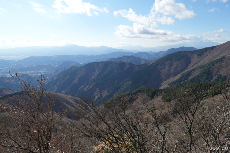 丹沢山から不動ノ峰、蛭ヶ岳と続く丹沢の主稜線も見えてきた。
