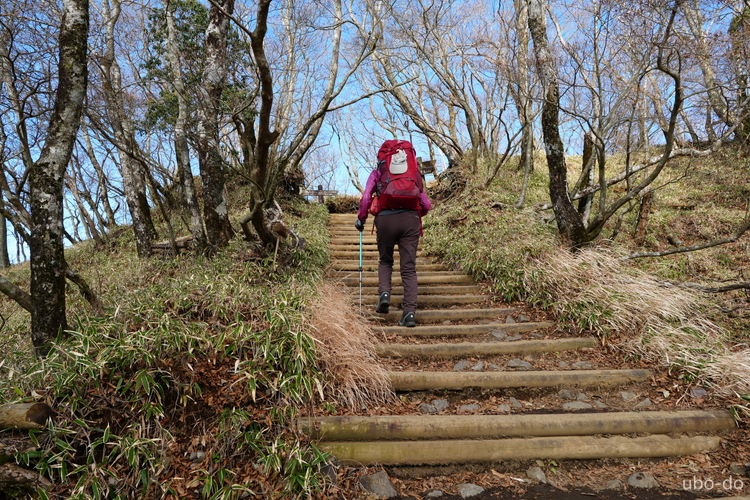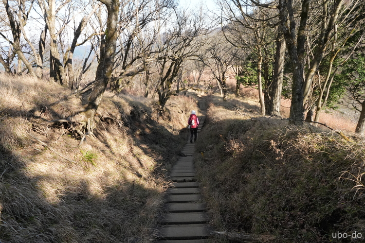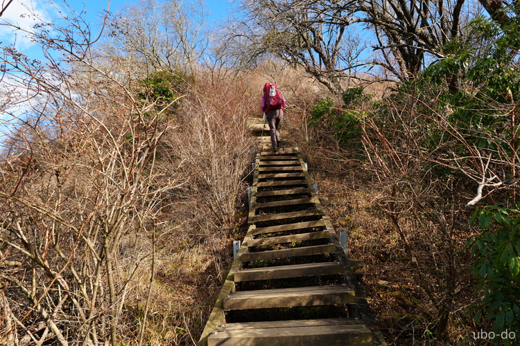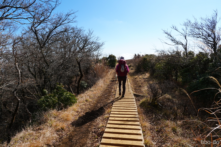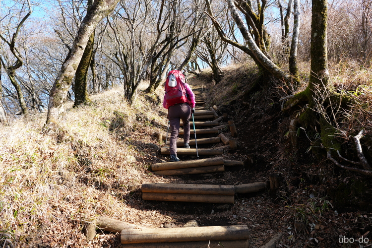 鞍部まで木段をゆるやかに下る。意外と距離があると感じた。