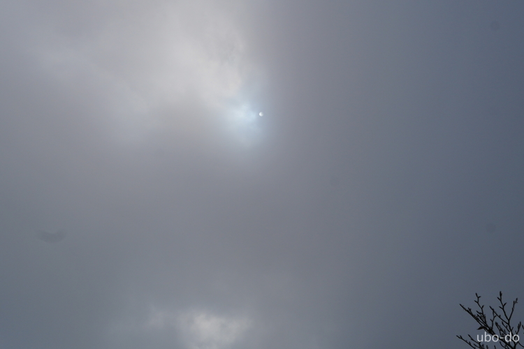 しばらくすると東側も見えなくなってきた。山頂は冷たい風が吹いて、太陽が隠れると手がかじかむほど寒かった。
