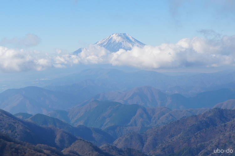 富士山の左側には檜洞丸と大室山。陽光の暖かさが身に染みた。
