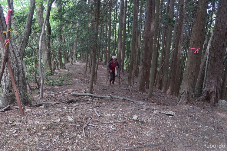 シロヤシオの尾根に入る場所にはピンクテープがあった。