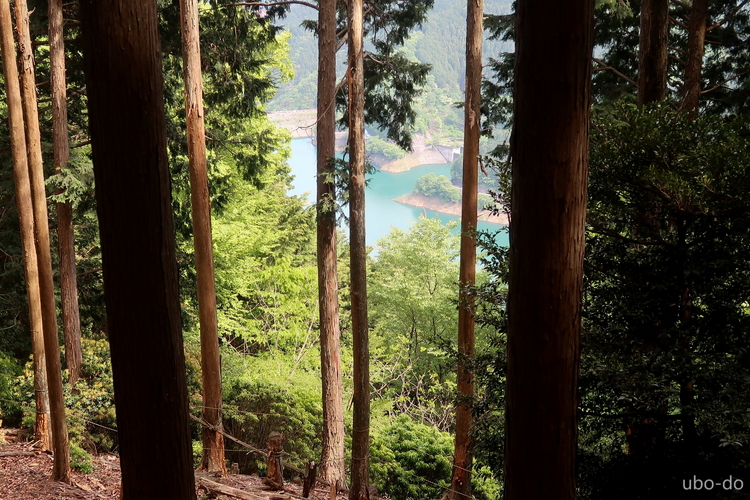 樹間に見えた名栗湖。