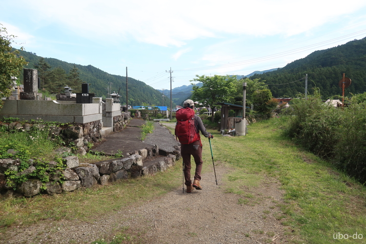 8:05 登山口はさわらびの湯のバス停の向かい、道路を挟んだ墓地の横にある。